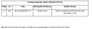 O item 11 foi adicionado ao campo referente ao Estado de Mato Grosso do Sul. A redação segue a publicação original no Diário Oficial da União de 6 de janeiro de 2020, com a seguinte descrição: