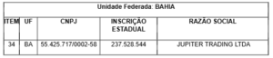 Fica acrescido o item 34 ao campo referente ao Estado da Bahia no Anexo Único do Ato COTEPE/ICMS nº 2/2020. Assim, o cadastro passa a vigorar com a seguinte inclusão: