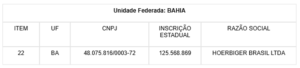 Fica acrescido o item 22 ao campo referente ao Estado da Bahia no Anexo Único do Ato COTEPE/ICMS nº 5, de 10 de janeiro de 2020, publicado no Diário Oficial da União de 13 de janeiro de 2020, com a seguinte redação: