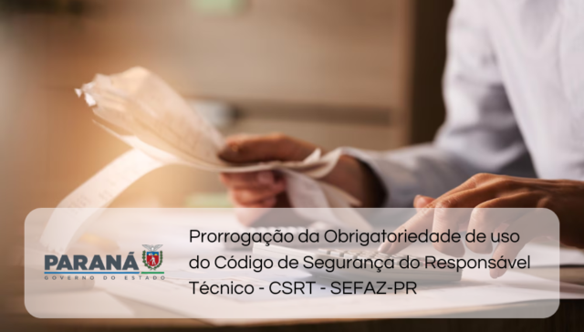 Tags ÂMBITO ESTADUAL adm 12 meses ago Prorrogação da Obrigatoriedade de uso do Código de Segurança do Responsável Técnico – CSRT – SEFAZ-PR