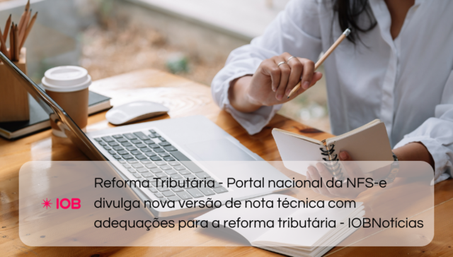 Tags DOCUMENTO FISCAL ELETRÔNICO adm 12 meses ago Reforma Tributária – Portal nacional da NFS-e divulga nova versão de nota técnica com adequações para a reforma tributária – IOBNotícias