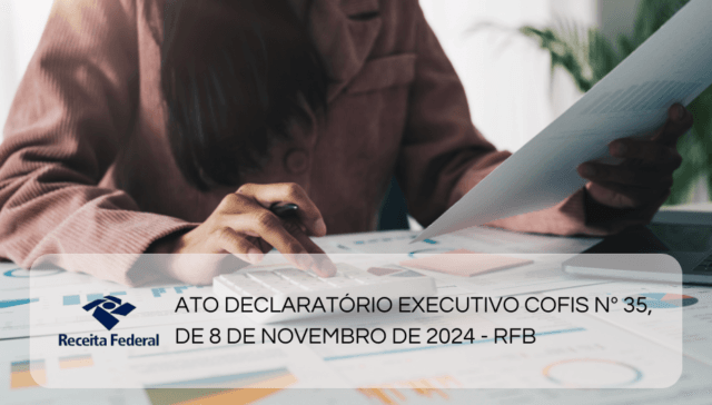 Tags ÂMBITO FEDERAL adm 1 ano ago ATO DECLARATÓRIO EXECUTIVO COFIS Nº 35, DE 8 DE NOVEMBRO DE 2024 – RFB