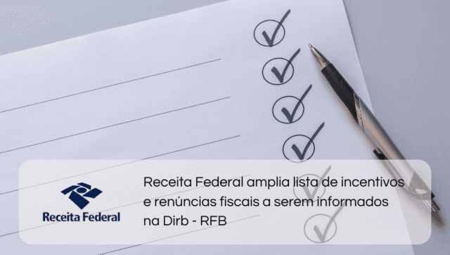 Tags ÂMBITO FEDERAL adm 1 ano ago Receita Federal amplia lista de incentivos e renúncias fiscais a serem informados na Dirb – RFB