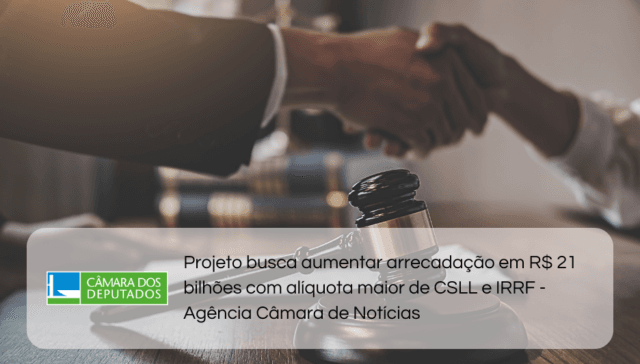 Tags ÂMBITO FEDERAL adm 1 ano ago Projeto busca aumentar arrecadação em R$ 21 bilhões com alíquota maior de CSLL e IRRF – Agência Câmara de Notícias