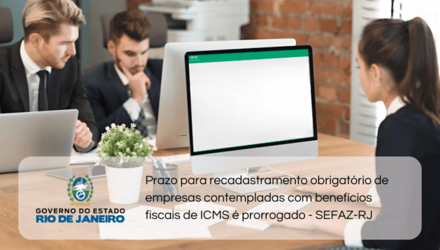 Tags ÂMBITO ESTADUAL adm 2 anos ago Prazo para recadastramento obrigatório de empresas contempladas com benefícios fiscais de ICMS é prorrogado – SEFAZ-RJ