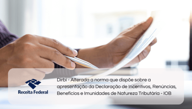 Tags ÂMBITO FEDERAL adm 2 anos ago DIRBI: Alterada a norma que dispõe sobre a apresentação da Declaração de Incentivos, Renúncias, Benefícios e Imunidades de Natureza Tributária