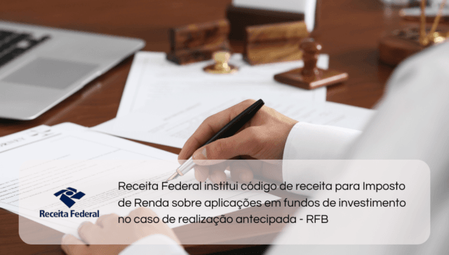 Tags ÂMBITO FEDERAL adm 2 anos ago Receita Federal institui código de receita para Imposto de Renda sobre aplicações em fundos de investimento no caso de realização antecipada – RFB