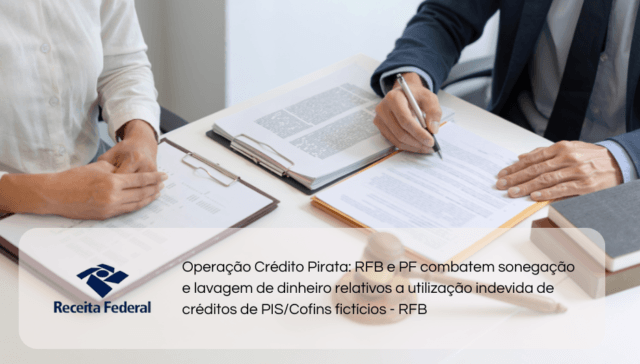 Tags ÂMBITO FEDERAL adm 2 anos ago Operação Crédito Pirata: RFB e PF combatem sonegação e lavagem de dinheiro relativos a utilização indevida de créditos de PIS/Cofins fictícios – RFB