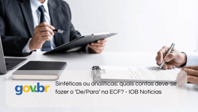 Tags ÂMBITO FEDERAL adm 2 anos ago Sintéticas ou analíticas: quais contas deve-se fazer o ‘De/Para’ na ECF? – IOB Notícias