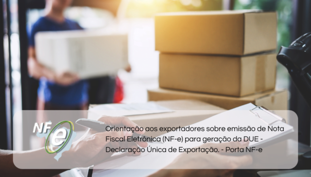 Tags ÂMBITO ESTADUAL adm 2 anos ago Orientação aos exportadores sobre emissão de Nota Fiscal Eletrônica (NF-e) para geração da DUE – Declaração Única de Exportação. – Porta NF-e