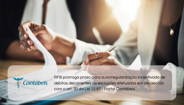 Tags ÂMBITO FEDERAL adm 2 anos ago RFB prorroga prazo para autorregularização incentivada de débitos decorrentes de exclusões efetuadas em desacordo com o art. 30 da Lei 12.97