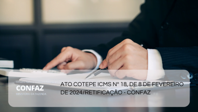 Tags ÂMBITO FEDERAL adm 2 anos ago ATO COTEPE ICMS Nº 18, DE 8 DE FEVEREIRO DE 2024/RETIFICAÇÃO – CONFAZ